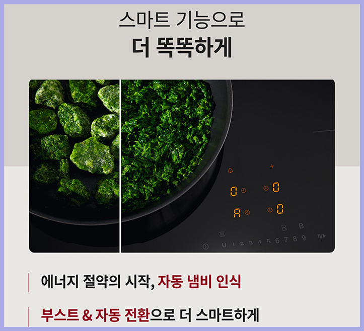 냄비 크기를 정밀하게 감지할 수 있는 용기 인식 기능을 가지고 있는