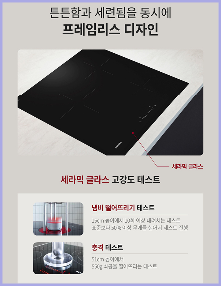 을 완성해 주는데요 밀레 자체 고강도 글라스 테스트를 거쳐 내구성을