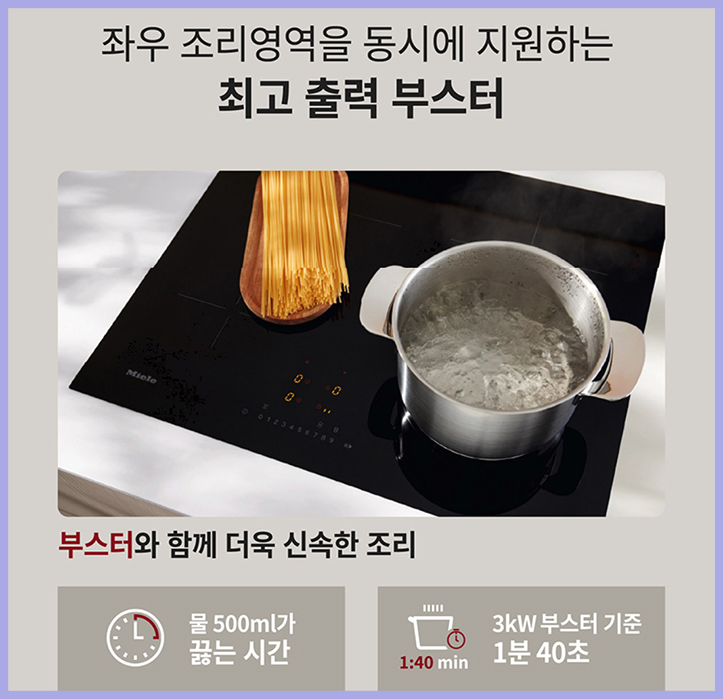 밀레 인덕션 4구 KM7363FL 은 좌우 조리영역을 동시에 지원하는