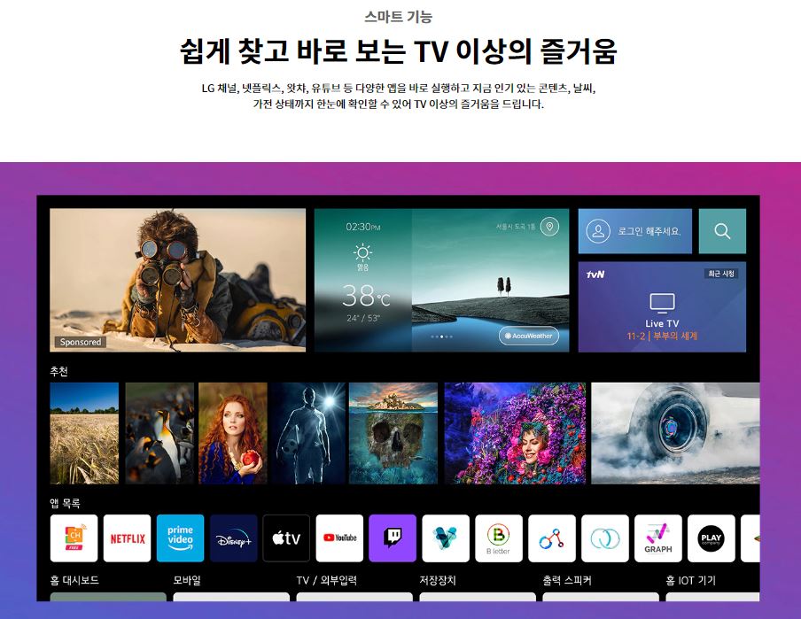 색상으로 보정해 주어 극강의 화질을 경험할수 있느
