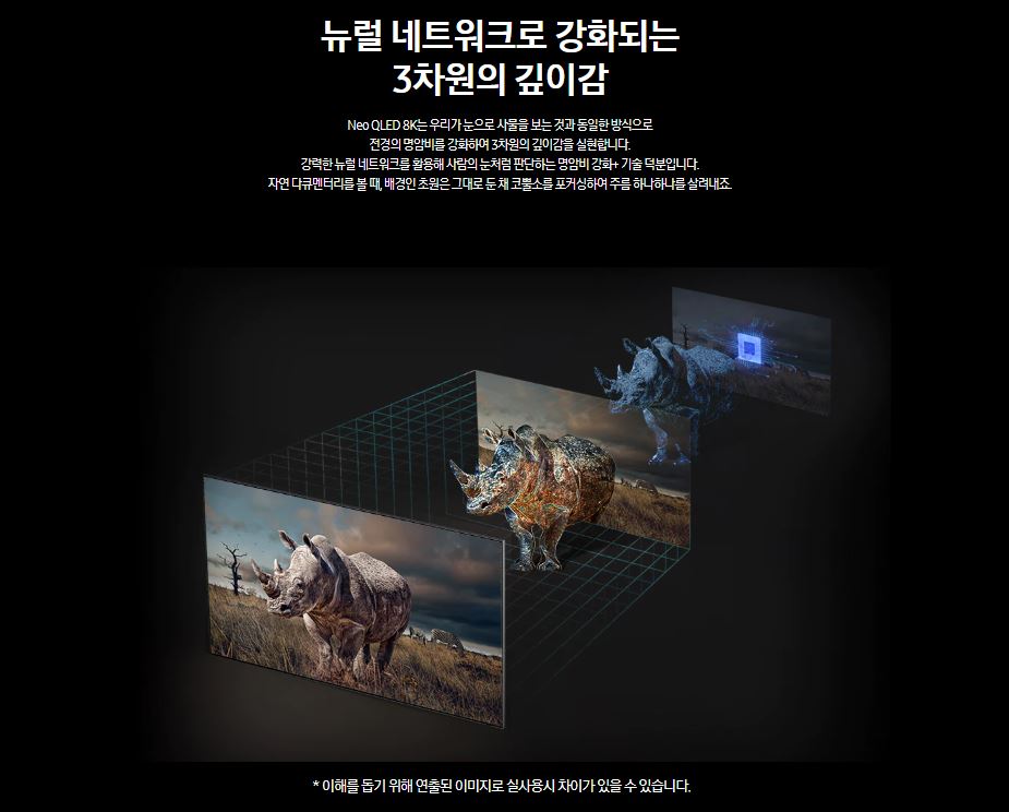 명암비를 강화하여 3차원의 깊이감을 실현해 주는 티비에요