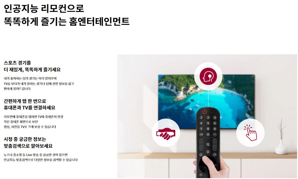 86UP831C0NA LG 86인치 TV 할인정보 공유 내가 좋아하는 스포츠 팁을 설정해 놓으면 가족과 영화나 드라마를 보는 중에 경기시간과 일정 경기스코어를 알려 주는...
